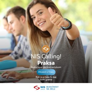 Kompanija NIS i ove godine će omogućiti studentima da prva radna iskustva steknu na praksi u kompaniji. Kako bi studentima obezbedio više fleksibilnosti tokom prakse, NIS je pokrenuo novi program pod nazivom „NIS Calling“ koji podrazumeva 320 sati prakse koju odabrani studenti mogu da iskoriste u periodu od tri meseca, u skladu sa svojim obavezama na fakultetu