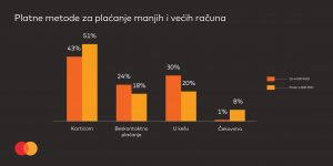 U aprilu 2020. godine, limit za beskontaktna plaćanja Mastercard karticama bez unošenja PIN koda podignut je sa 3.000 na 4.000 dinara, a 22% MasterIndex ispitanika potvrdilo je da je ta opcija u skladu sa njihovim potrebama. Imajući u vidu da bi trećina ispitanika želela da plaća iznose do 5.000 dinara bez unošenja PIN koda, a da bi se dodatnih 21% ispitanika osećalo komforno sa beskontaktnim plaćanjima bez unosa PIN-a i preko tog iznosa, jasno je da možemo govoriti o stečenoj navici korišćenja ove platne metode, kao i izgrađenom poverenju koje korisnici imaju.